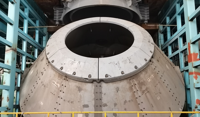 广西盛隆炼钢工程炼钢车间主体工艺设施项目分三步实施,内容主要包含转炉系统、氧副枪系统、汽化系统、上加料系统、在线吹氩喂丝系统、除尘系统、连铸机系统、LF炉系统、炼钢连铸车辆等,施工范围内液压、燃气、热力、通风、给排水设施、三电控制系统及总图运输等。此次倾动的转炉本体由托圈、炉壳、倾动装置组成,总重约520吨,采用十七冶自主研发的“台车法”安装工艺。