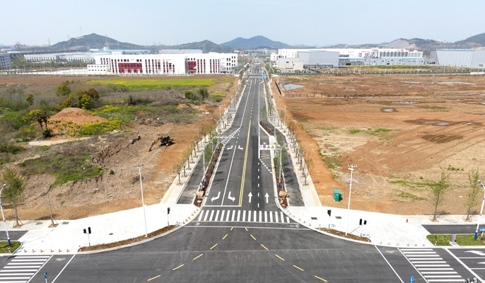 该项目位于马鞍山市经济技术开发区,建设内容包括银黄路东延、茗塘路、釜山路、兴马大道、隆兴路、同心路、明珠路及金山湖路、明珠路、釜山路三处下穿道路建设工程,道路总长度约9412米。此次交工验收的釜山路全长1350米,红线宽度为40米,为开发区东西向城市主干路,设计速度40千米/时;同心路全长1989米,红线宽度为25米,为开发区南北向城市次干路,设计速度50千米/时。