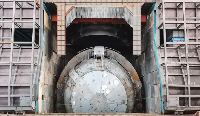 项目位于广西省防城港市港口区,共分三步实施,内容主要包含转炉系统、氧副枪系统、汽化系统、上加料系统、在线吹氩喂丝系统、除尘系统、连铸机系统、LF炉系统、炼钢连铸车辆等。本次倾动的新4#转炉本体由托圈、炉壳、倾动装置组成,总重约520吨,采用十七冶自主研发的“台车法”安装工艺进行安装。