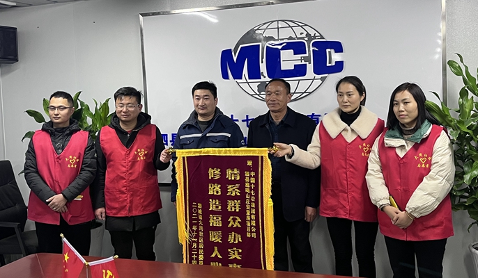 11月24日,大周社区村民将写有“情系群众办实事、修路造福暖人心”的锦旗送到中国十七冶集团有限公司南京分公司鹿鸣山庄安置房项目部,感谢项目部为社区修缮的便民道路,以表达对项目部造福社区百姓的感恩之情。
