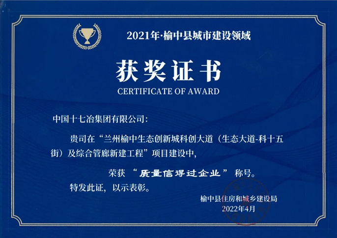 春意融融,喜讯连连。4月24日,由中国十七冶集团荣获2021年榆中县城市建设领域“质量信得过企业”称号。