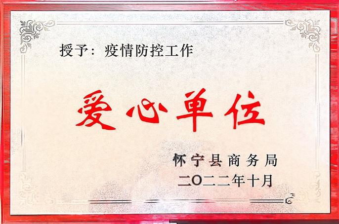 11月8日,中国十七冶集团房屋分公司怀宁项目收到来自怀宁县商务局赠予的“爱心单位”荣誉奖牌。怀宁县政府对十七冶在怀宁县疫情防控工作中的突出表现给予了高度的肯定。