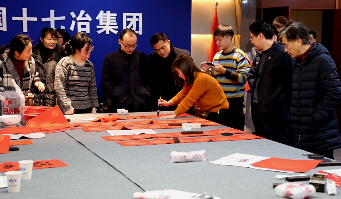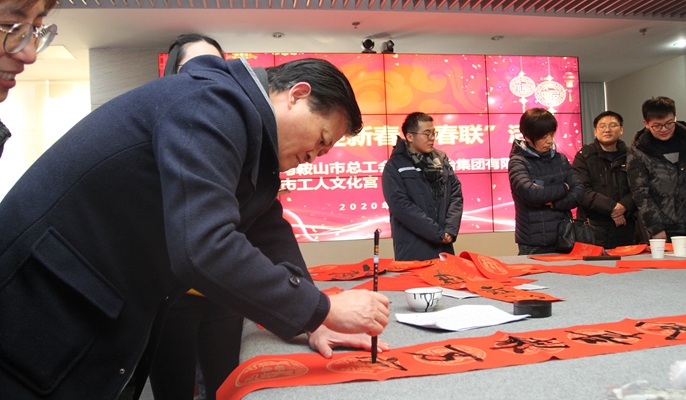 “千门万户曈曈日,总把新桃换旧符”,为迎接即将到来的新春佳节,1月19日,十七冶工会与马鞍山市总工会联合举办,马鞍山市文化宫承办“挥毫泼墨送春联,龙飞凤舞迎新春”为主题的迎新春、送春联活动,活动吸引了大批的职工,现场热闹非凡,喜气洋洋。马鞍山市工人文化宫主任、书记翟明霞,原市书法家协会主席袁诚,副主席徐难易、汪敏文,安徽省书法家协会会员吴俊,中国十七冶集团工会主席、副总经济师魏致家,中国十七冶集团工会副主席、党委工作部副部长李静出席活动。