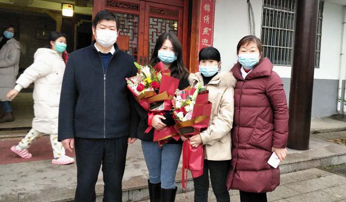医院纪委书记、副院长高荣东赶赴隔离点迎接,代表医院对她们表示了慰问,祝贺她们平安归来。在隔离病房,她们是冲在一线的战士,是病人的依赖。1月31日,她们第一次穿上厚重的防护服,开始了在四院隔离病房的工作。她们像一只企鹅,“笨拙”的进行着每项护理,为患者输液,雾化,发药,生活方面的帮助,病区的消毒隔离工作……作为共同进退的战友,上班前她们都会相互打气,勉励彼此。有苦亦有甜,暖心的是病人为她们竖起的大拇指,感动的是病人为她们发来感谢和问候的短信。正是相互之间的守望相助,面对困难的团结一心,点亮了抗击疫情的丝丝烛火,传递出血浓于水的同胞之情,汇集成一股磅礴的力量,让这个冬天变得格外温暖。