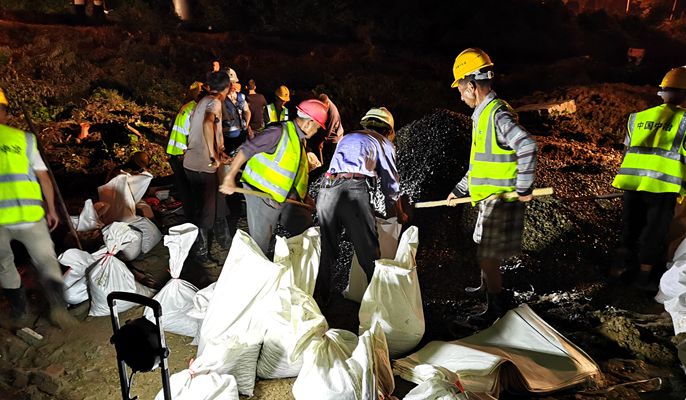 “石牌工业园出现大坝决堤险情,请中国十七冶提供帮助……”7月7日凌晨1点30分,项目部接到当地政府紧急求助电话。在了解情况后,三名项目负责人紧急成立抗洪小组,火速前往施工现场抽调一台挖掘机,并以最短时间、最快速度赶至大坝决堤点协助救援。由于通往大坝路段十分狭窄无法通行大型车辆,抗洪小组一边派人负责留守现场指挥挖机清理堤防障碍,修建防汛通道,一边马不停蹄地回到施工现场安排人员、机械和车辆,同时紧急调运混凝土块等物资堆垒防洪堤坝。随后,项目抗洪小组轮流值守决堤口,昼夜不分地指挥现场开展抢险救灾工作,经过三天两夜的抢险救援,当前险情已基本得到控制,抗洪抢险工作仍在有序进行中。一方有难,八方支援。在此次抢险救灾中,十七冶怀宁市政项目大力响应石牌镇政府号召,在人民群众生命安全和宝贵财产受到威胁的关键时刻挺身而出,不怕困难,逆向而行,冲锋向前,连续奋战,以实际行动诠释了十七冶人的担当,展现了积极履行社会责任的良好企业形象。