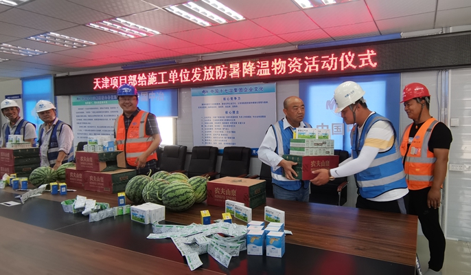 6月20日,为有效应对高温天气,保证夏季生产安全,天津市经济适用住房项目为各协作单位的一线工人以及现场管理人员送上防暑降温物品,用点滴心意,送大家清凉一夏。