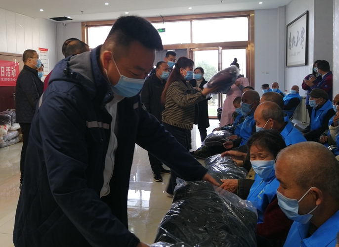 在敬老院大厅,参与活动的团员青年们通过工作人员的介绍对敬老院基本情况进行了详细了解,积极陪老人聊天,询问他们的衣食住行状况及生活适应情况,并送上了50件棉衣及米、面、油等慰问品,用实际行动关怀老人们的生活,同时送去了寒冬前的问候与祝福,受到了院方及老人们的一致好评。